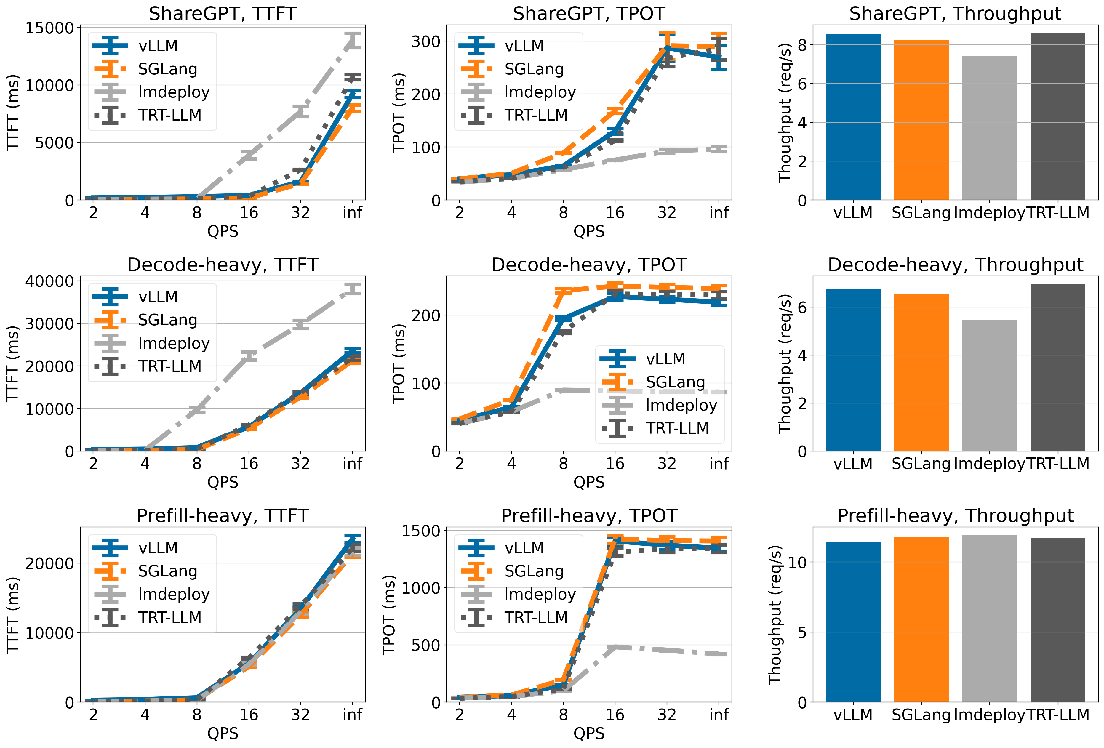 - Throughput is measured under QPS inf (meaning that all requests come at once).